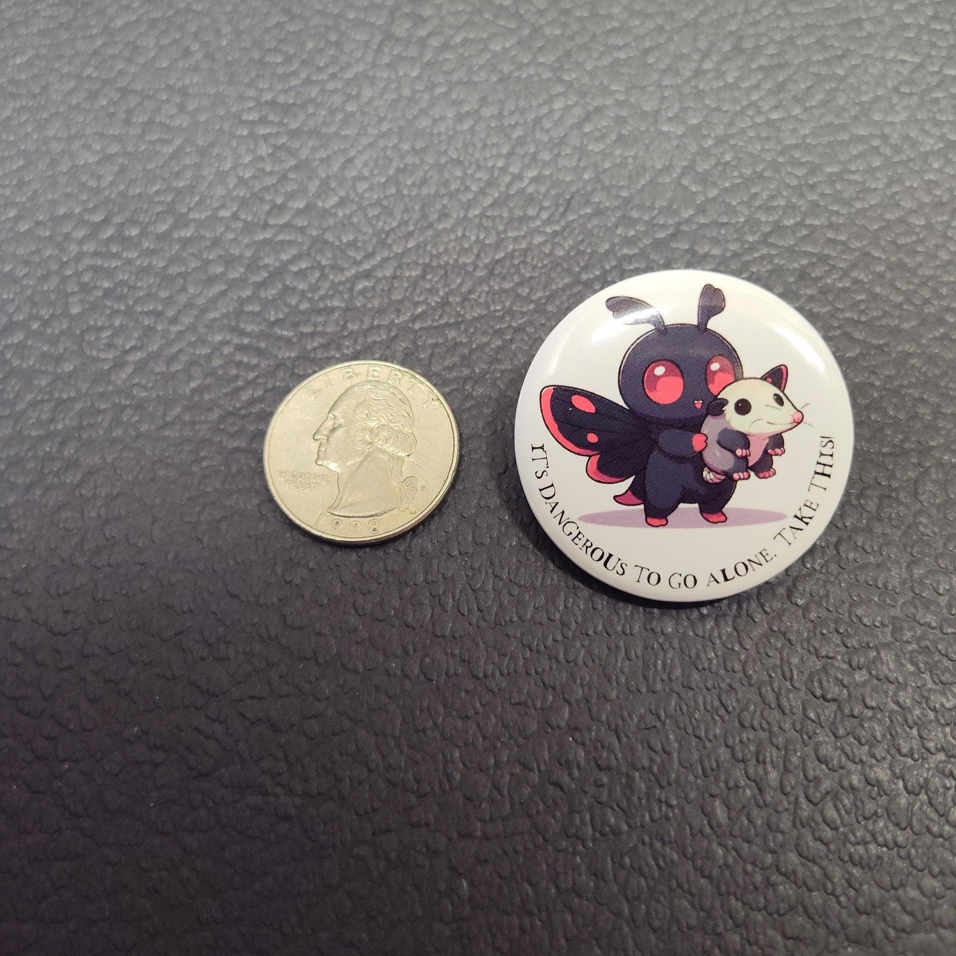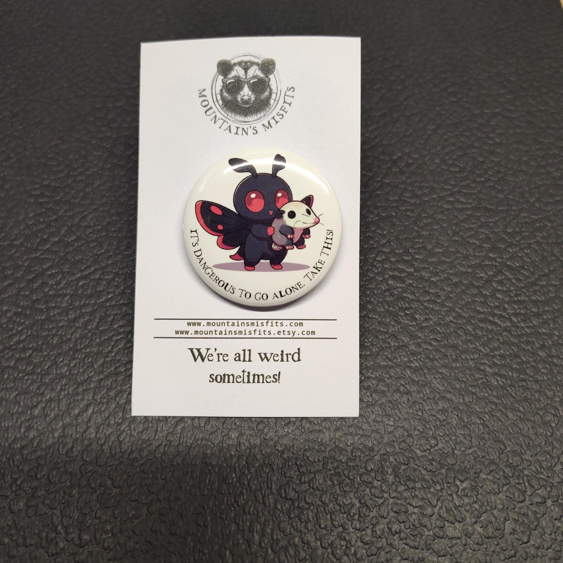 Mothman It's Dangerous Pin: Mothman Opossum Button Pin