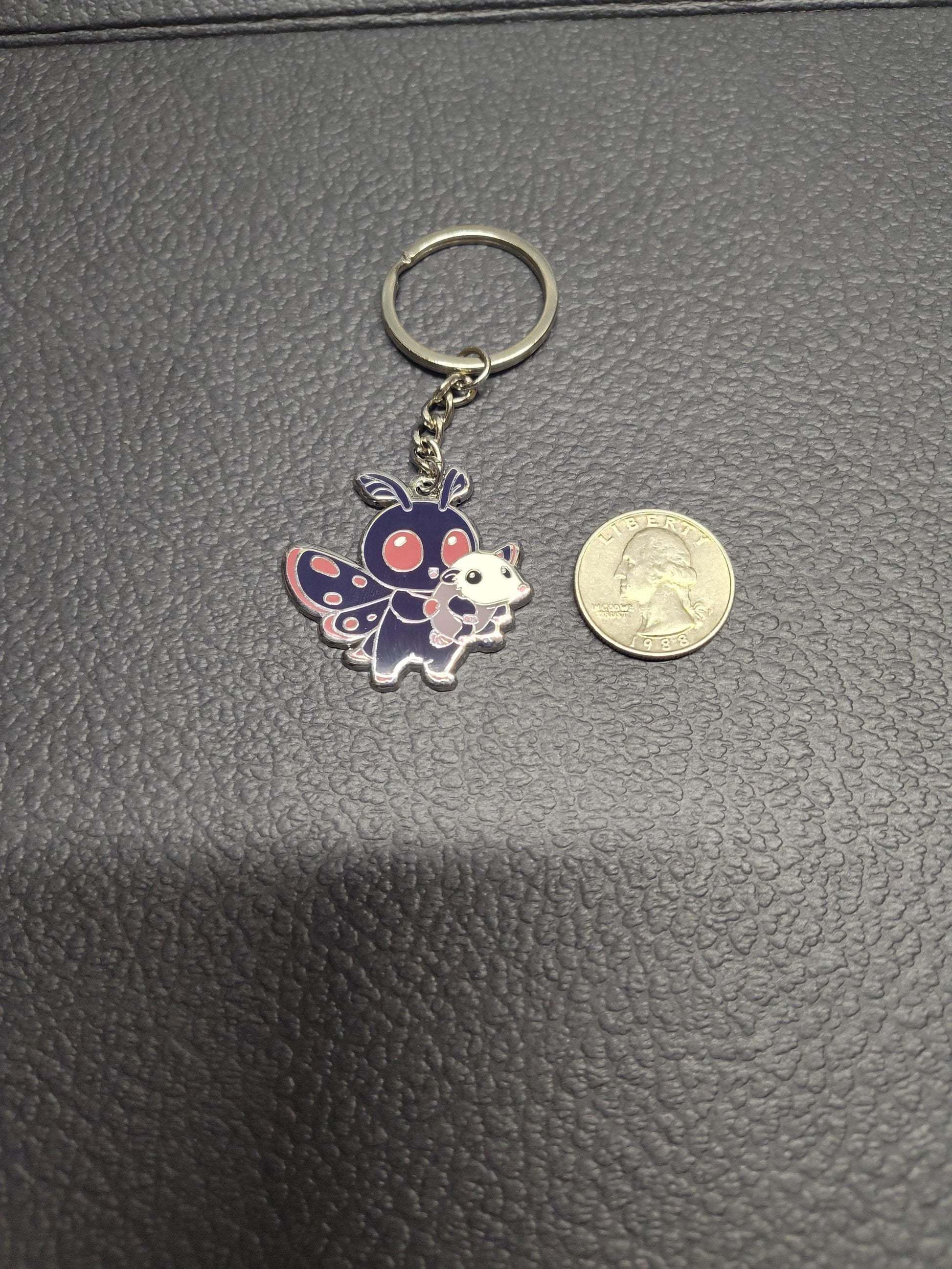 Mothman w/ Friend Enamel Keychain - Mothman and Opossum Keychain